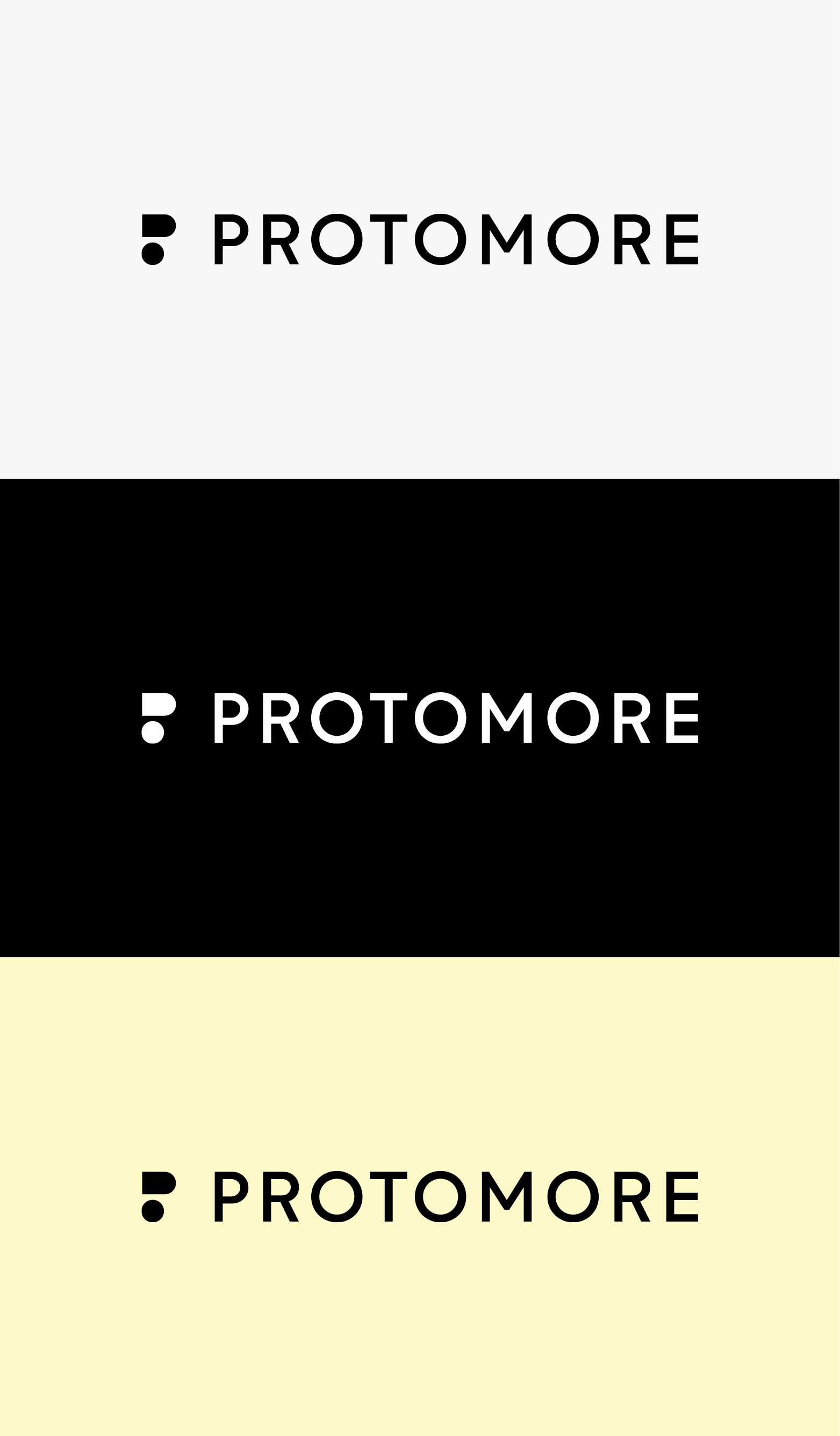 Logoen til Protomore er satt sammen av et symbol og typografi. Symbolet er bygd opp av to sirkler og én firkant som er formet som en P – for Protomore.